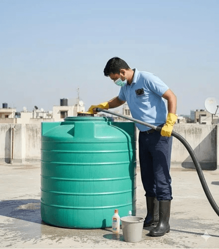 • تعقيم الخزان باستخدام مطهرات فعالة للقضاء على الجراثيم والبكتيريا وضمان سلامة المياه.
